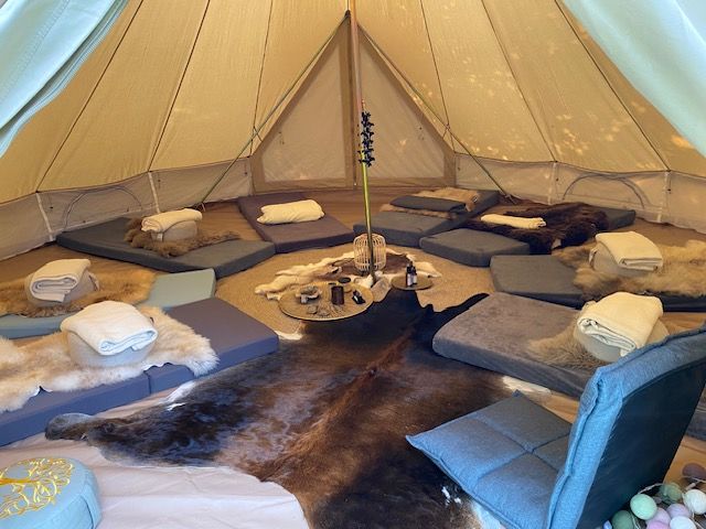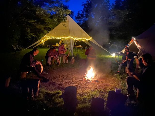 Halverwege de zweethut ceremonie nodigen we de drums uit om de reis samen voort te zetten, waarna jullie verbonden met elkaar opnieuw geboren worden tijdens het verlaten van de zweethut.