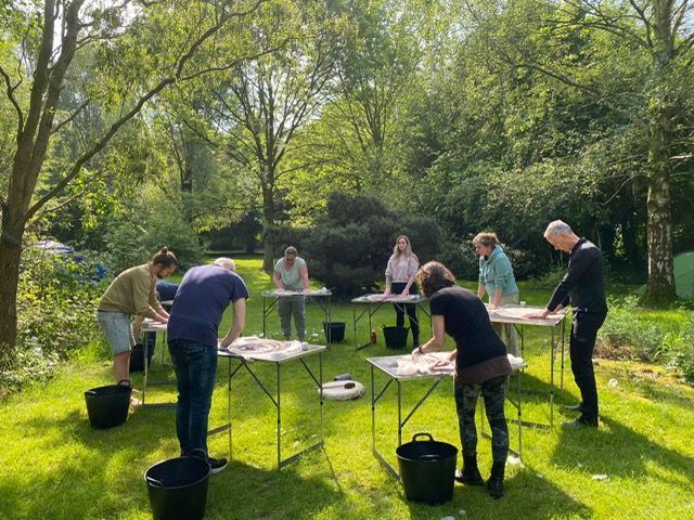 De dag begint met het wassen van de huiden, begeleid door onze adem.