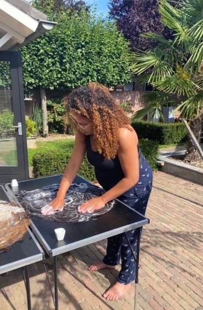 Wil je meer creaties bewonderen of een tas aanschaffen zodat jou drum er lekker droog bij zit op reis, kijk dan eens op haar website Gallery – Myrna Kollau