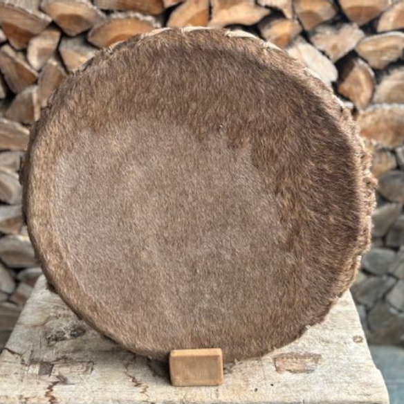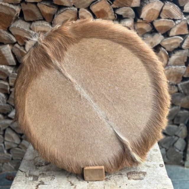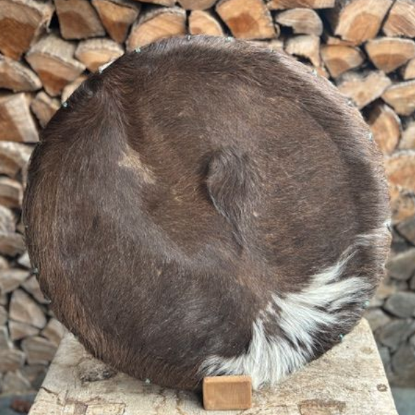 Deze sjamanendrum met de huid van een Afrikaanse geit is net als de kleur van zijn vacht krachtig en intens !