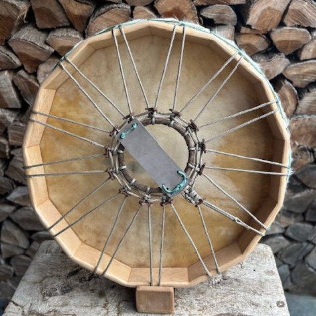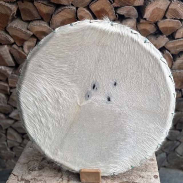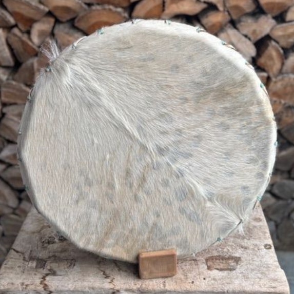 Deze drum met de huid van een wit paard is de ideale transreis drum !