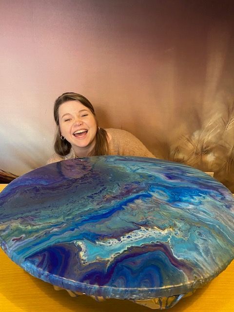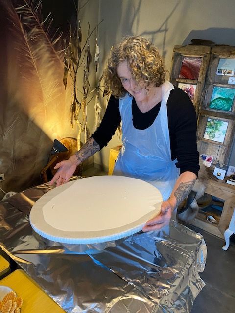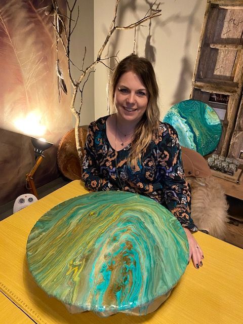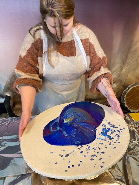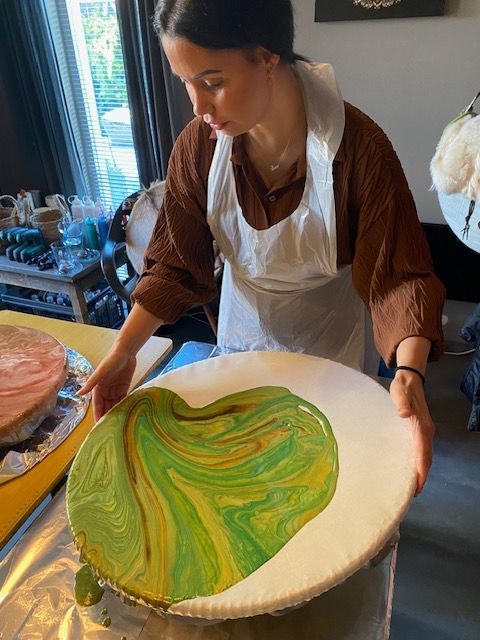 Daarna gaan we gieten en ontstaat er een tekening die een persoonlijke boodschap brengt.